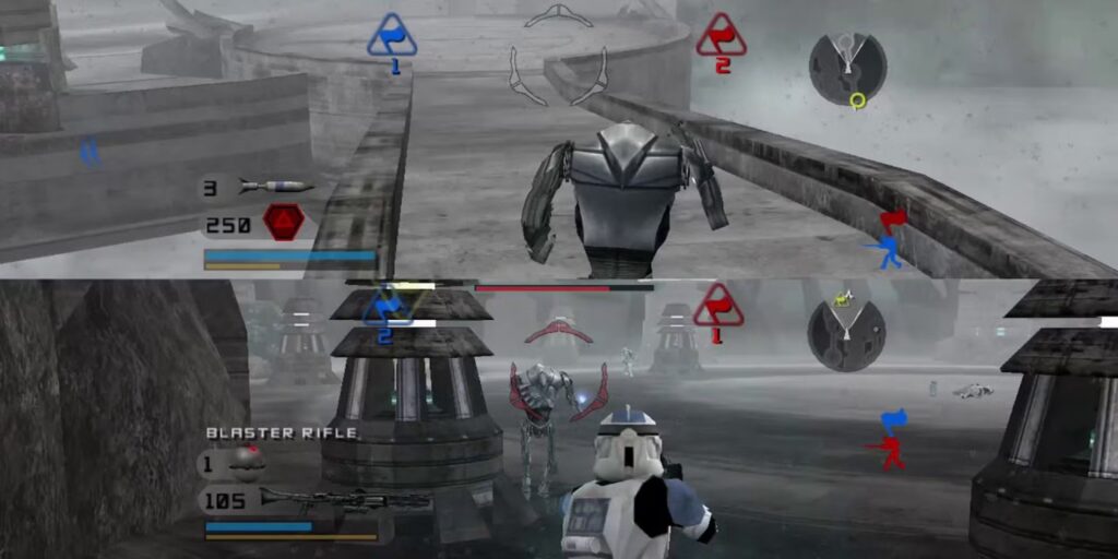(Released: 2004) The original Star Wars: Battlefront was a game-changer upon its release in 2004, boldly envisioning the franchise as a military shooter that allowed players to step directly into cinematic battles from the movies. Whether fighting as a Stormtrooper on Cloud City or leading a charge as a battle droid across the grassy fields of Naboo, the game effectively made those large-scale skirmishes feel real, particularly on platforms like the PS2. Even today, the original holds a special place in many fans’ hearts, remembered for its intuitive user interface, expansive maps, and intense battles. While perhaps not as technically advanced as later titles, its impact was undeniable. It defined the childhood gaming experiences of many through its robust single-player “Instant Action” mode and, crucially, its memorable local multiplayer combat.